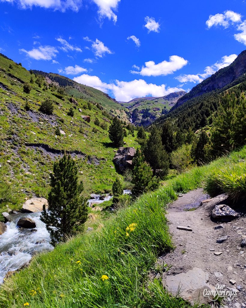 La excursión por excelencia de Cerler pueblo, ya que además no tiene complicación y es apta para toda la familia. En este itinerario circular de unos 6,5km y 350m de desnivel que parte desde el mismo casco urbano de Cerler, podrás descubrir la ermita de San Pedro Mártir y 3 cascadas espectaculares: Mascarada, Clotet y Ardonés o del Boom, esta última se cruza por una pasarela metálica. Durante todo el recorrido disfrutarás de unas vistas increíbles del valle.
